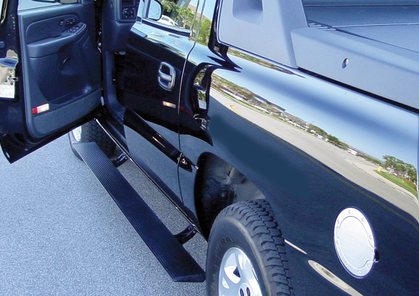 - Fully-automated running boards extend 10 to 12 inches in one second