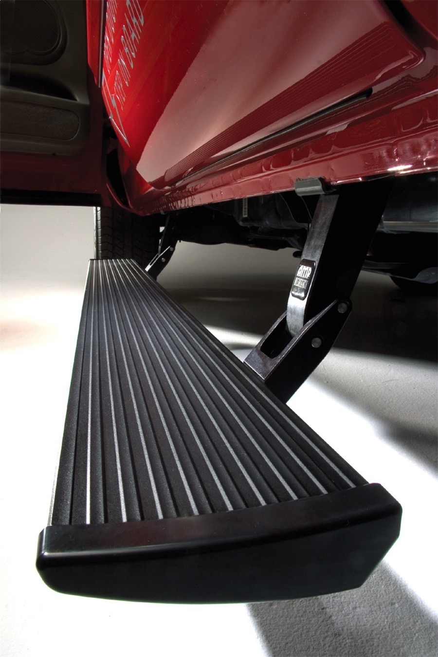 - Step comfortably and confidently onto the extra wide surface of AMP Research PowerStep Running Boards