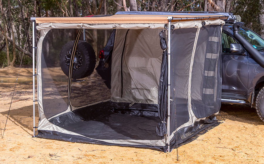 - Aluminum-encased awning pairs with most roof racks or roof bars