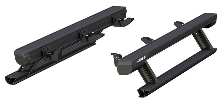 - Confidently reach cargo on your roof rack, or provide a grand entrance for a passenger, with the two-step Aries ActionTrac Powered Running Boards