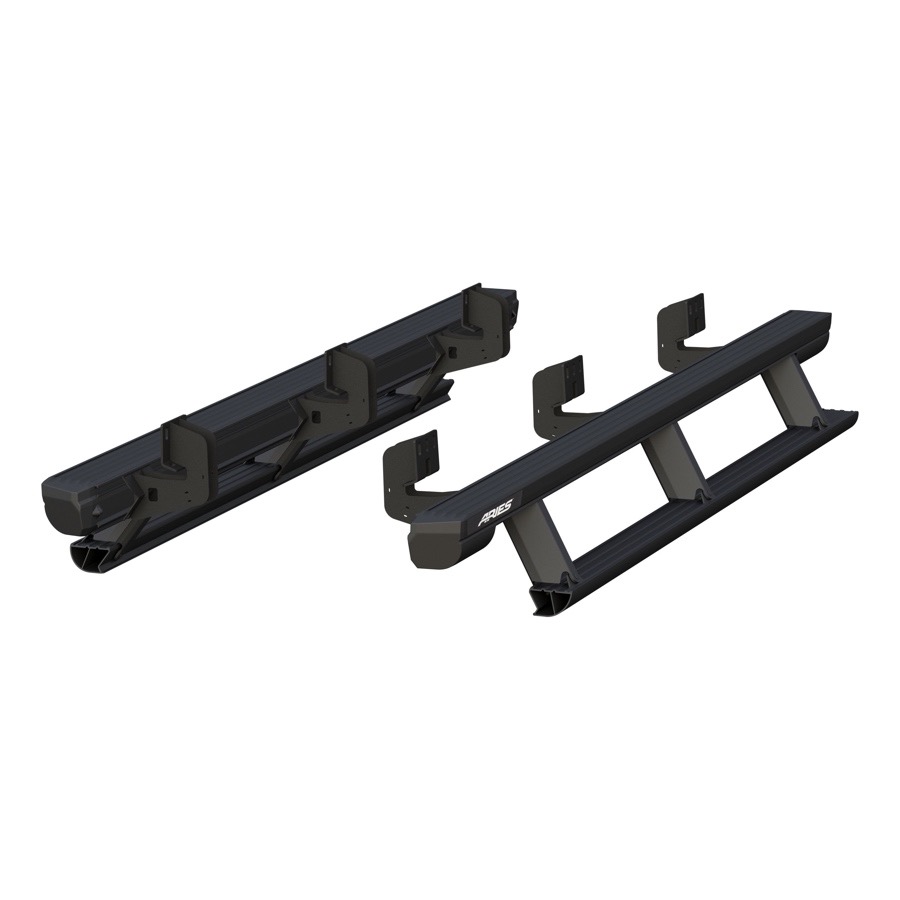- Confidently reach cargo on your roof rack, or provide a grand entrance for a passenger, with the two-step Aries ActionTrac Powered Running Boards