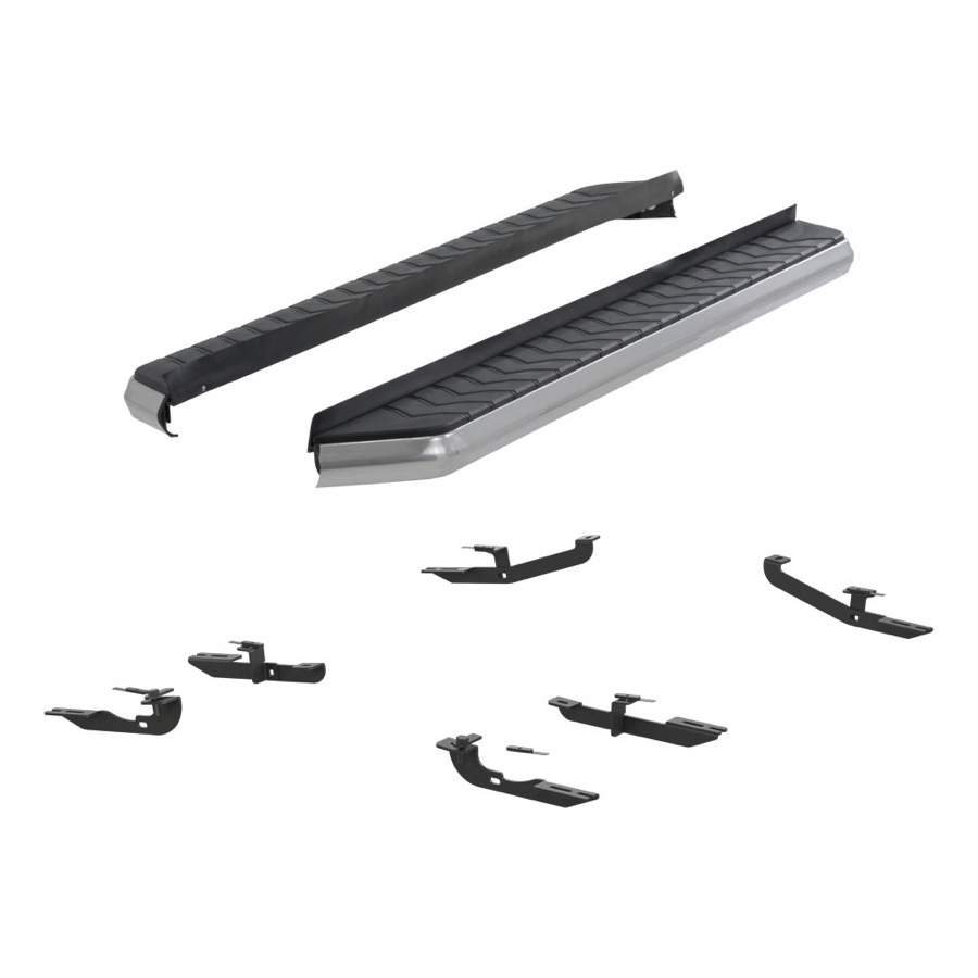 With stainless steel trim and your choice of a carbide black powder coat or stainless finish, these boards look great and remain fully corrosion-resistant for years to come. You'll get a timeless (and easy) exterior upgrade for your SUV with these side steps. The Aries AeroTread Running Boards come in pairs and are supported by a 3-Year Warranty.