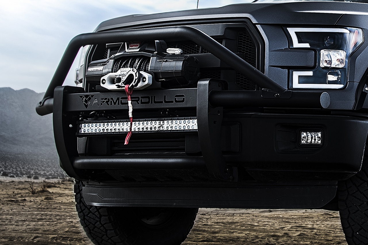 The front-end of your truck is the most susceptible to damage from debris - especially if you enjoy off-roading and trail driving. Your factory bumper just can't keep the front end of your ride safe from surprised animals, fallen branches, trail debris and other hazards. The humble armadillo would have the same problem if it weren't for the natural body armor they wear. Now you can drive confidently, either on or off the road, knowing your front-end is protected with the Armordillo AR Pre-Runner Guard.