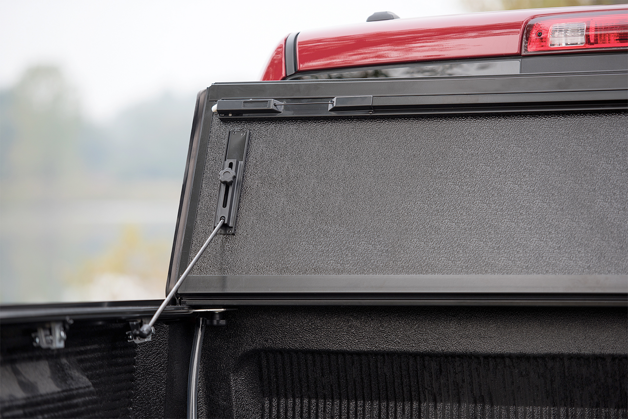 The underside of your BAKFlip F1 Tonneau Cover features a high-density EPS core followed by an Aluminum bottom layer. Together, these elements create panels that are as dense, rigid, and high-quality as OEM gear. When closed, this truck bed cover offers complete security when coupled with a locking tailgate. The cover folds open in seconds and can be secured in the open position when you transport large furniture and appliances.