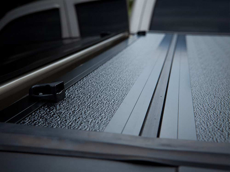 Weather-tight seals keep your truck bed bone dry year-round. This cover typically installs in about thirty minutes and sits flush with your bed rails for a sleek and stylish look. Each panel features rubber sides to prevent scuffing and two coats of epoxy primer finish. Covered by a 5-Year Warranty.