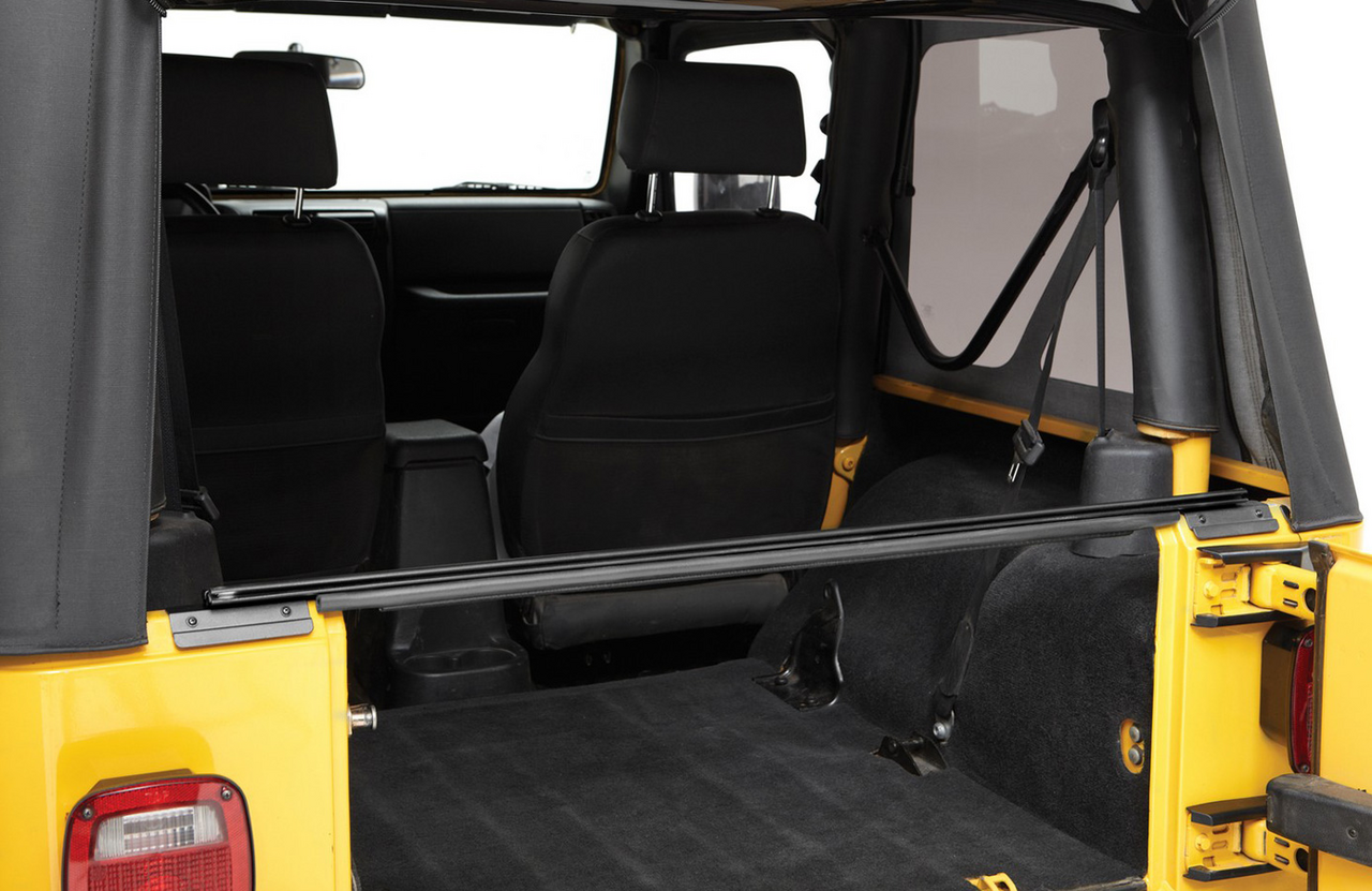 - Bar engages when you zip the rear window, creating a weatherproof seal to keep your Jeep's rear area dry