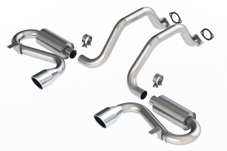 The Borla Exhaust System isn't for the weak. Carefully constructed with aircraft-grade stainless steel that layers the interior and exterior of your exhaust system, you'll enjoy added protection against corrosive damage as well as exhaust longevity. Choose from a selection of assembled parts and arrangements to make your ideal exhaust system. The ATAK system has the loudest voice with apparent aggression in every rumble. The S-Type is for those who want straight-back power while maintaining their roar. And if you're someone who wants Borla's insane surge in power at a lower volume, look no further than the Touring system.