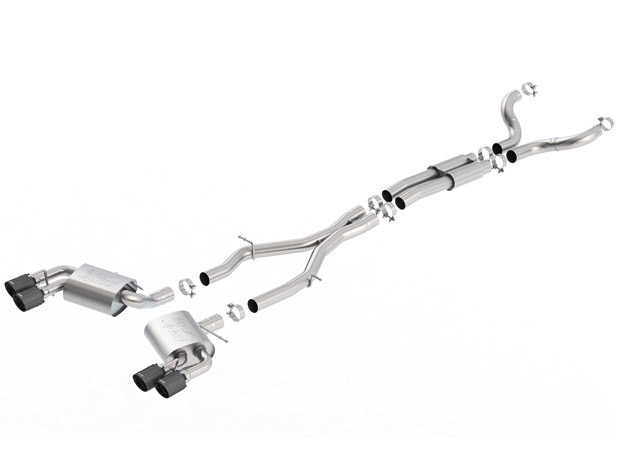 The Borla Exhaust System isn't for the weak. Carefully constructed with aircraft-grade stainless steel that layers the interior and exterior of your exhaust system, you'll enjoy added protection against corrosive damage as well as exhaust longevity. Choose from a selection of assembled parts and arrangements to make your ideal exhaust system. The ATAK system has the loudest voice with apparent aggression in every rumble. The S-Type is for those who want straight-back power while maintaining their roar. And if you're someone who wants Borla's insane surge in power at a lower volume, look no further than the Touring system.