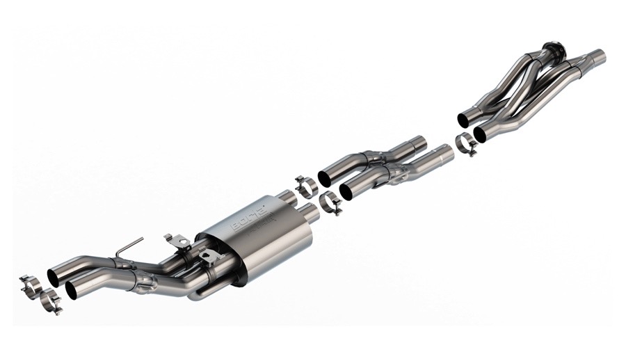 The Borla Exhaust System isn't for the weak. Carefully constructed with aircraft-grade stainless steel that layers the interior and exterior of your exhaust system, you'll enjoy added protection against corrosive damage as well as exhaust longevity. Choose from a selection of assembled parts and arrangements to make your ideal exhaust system. The ATAK system has the loudest voice with apparent aggression in every rumble. The S-Type is for those who want straight-back power while maintaining their roar. And if you're someone who wants Borla's insane surge in power at a lower volume, look no further than the Touring system.