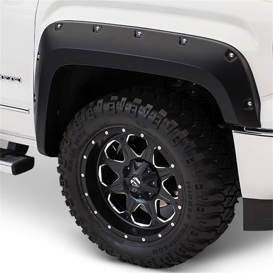 - Bushwacker Pocket Style Fender Flares equip your truck with heavy-duty protection that has a riveted, hardcore style