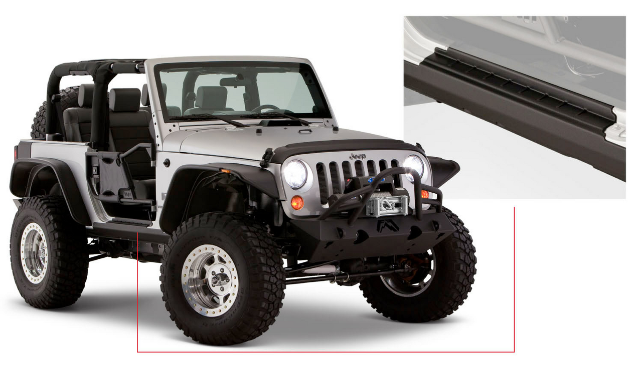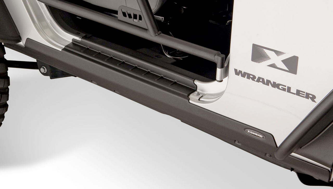 - Safeguard the side panels of your Jeep with an adventurous style using the Bushwacker Trail Armor Rocker Panels
