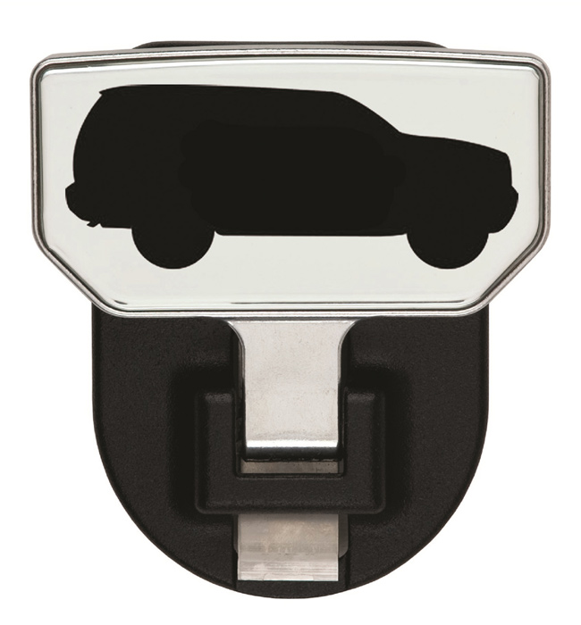 When flipped up, this Carr Step reveals your choice of 13 varied logo designs. In that position, it also functions like a hitch plug, preventing mud, moisture and more from getting in and causing deterioration.