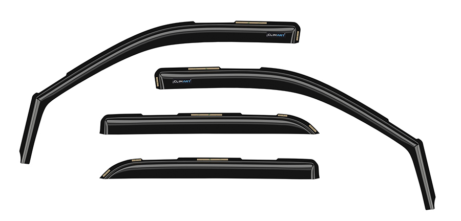 Each set of customized Clim Art Deflectors is a work of art. The design is not only appealing, but also ergonomic for improved aerodynamics. The flexible, shatterproof, premier acrylic fabrication will not fade, warp or crack, which means both the function and the form of your car, truck, van or SUV will be improved. The dark tint filters block much of the sun’s harmful UV rays.