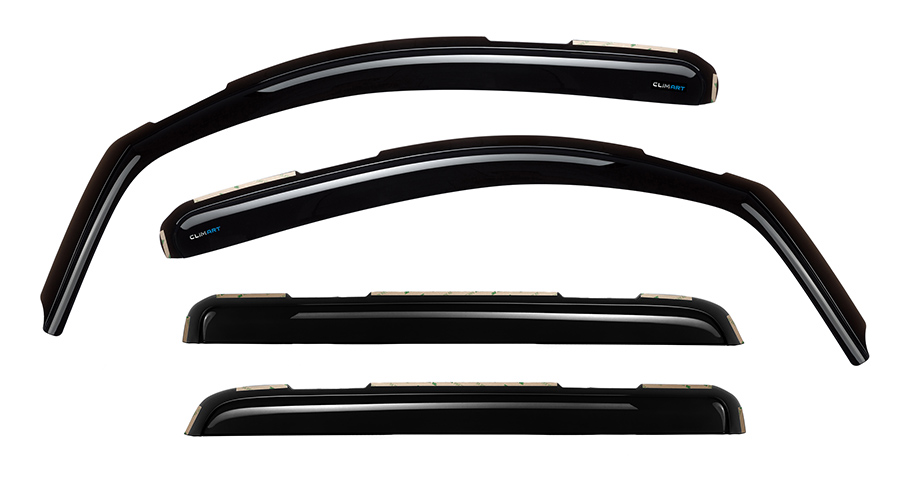 Each set of customized Clim Art Deflectors is a work of art. The design is not only appealing, but also ergonomic for improved aerodynamics. The flexible, shatterproof, premier acrylic fabrication will not fade, warp or crack, which means both the function and the form of your car, truck, van or SUV will be improved. The dark tint filters block much of the sun’s harmful UV rays.
