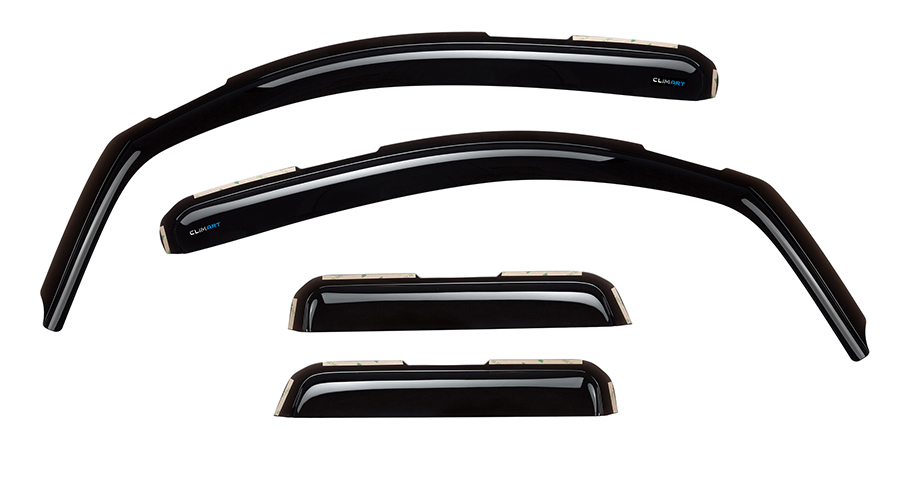 Each set of customized Clim Art Deflectors is a work of art. The design is not only appealing, but also ergonomic for improved aerodynamics. The flexible, shatterproof, premier acrylic fabrication will not fade, warp or crack, which means both the function and the form of your car, truck, van or SUV will be improved. The dark tint filters block much of the sun’s harmful UV rays.