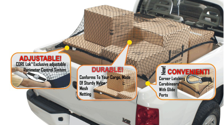 Are you still relying on a worn-out strap to secure your massive, oddly shaped load of random cargo in your hard-working pickup truck? Your gear, supplies, equipment and moving boxes deserve a complete Core Cargo Safety Net.