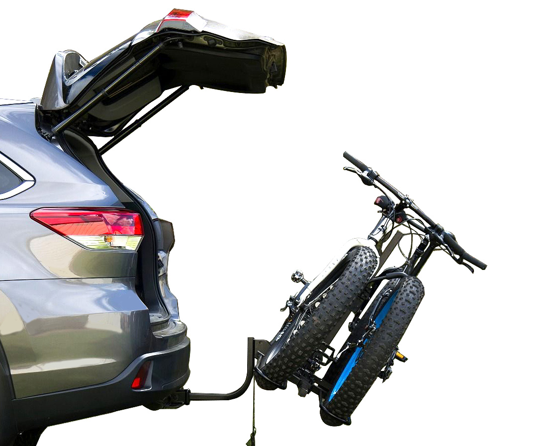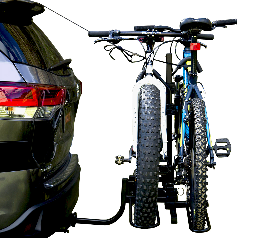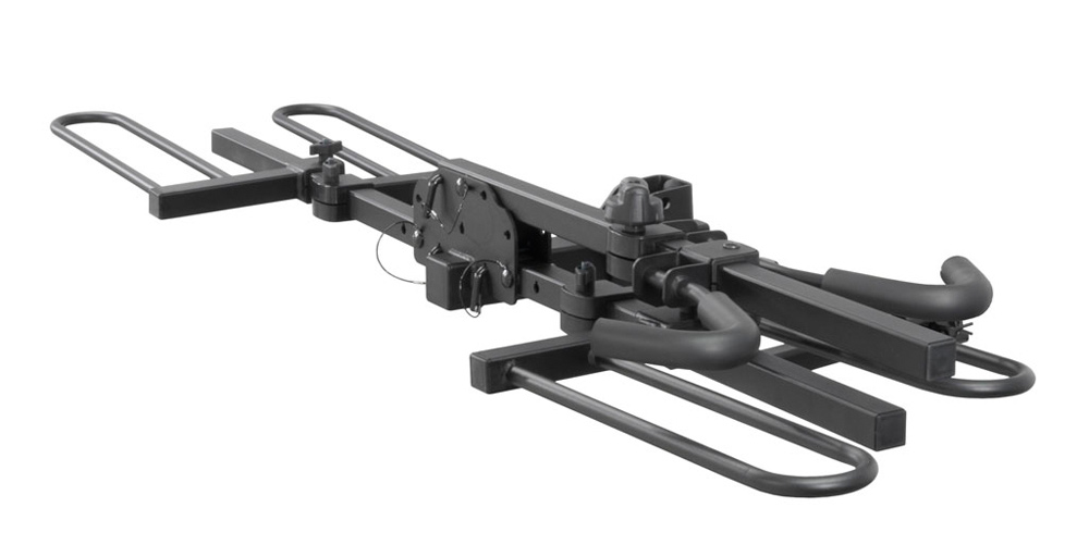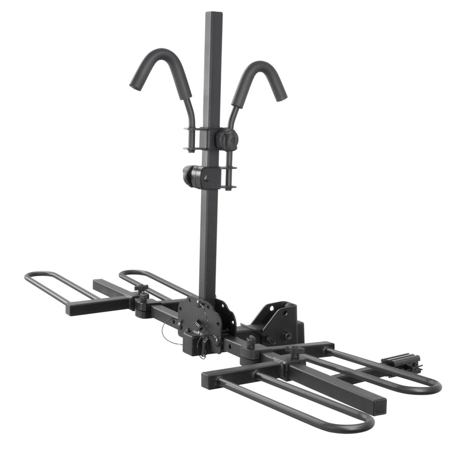 The well-crafted, anti-wobble shank allows you to haul your bikes without sustaining damage or hearing an annoying rattling. Once you've unloaded the bikes, your Curt Hitch Mount Bike Rack tilts down and stows away in a compact footprint so you can access your trunk or cargo area without needing to remove the hitch. And at the end of a long day of riding, the sides of the rack fold up for simple storage until you're ready to hit the trails again! This bike rack has a powder-coat finish that prevents water damage and rust, and it is built to work with 1.25" and 2" receiver tubes. A 1-Year Warranty is included.
