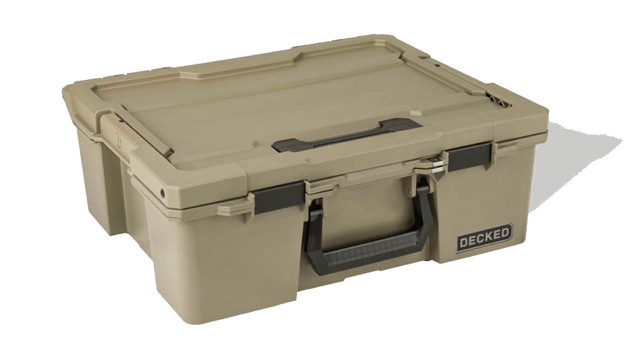 Your DECKED storage system is a heavy-duty, weathertight, and secure system for organizing and storing your gear. It contains two spacious, waist-level drawers that boast a 200-pound weight capacity, making it convenient to access and simple to use. Additional organizational options included in the basic system are a D-Box, a Crossbox, a Drawerganizer, and locking drawer dividers. With the addition of the Drawer Drain Plug, you can convert one drawer into a mobile ice chest, which is ideal for tailgating.