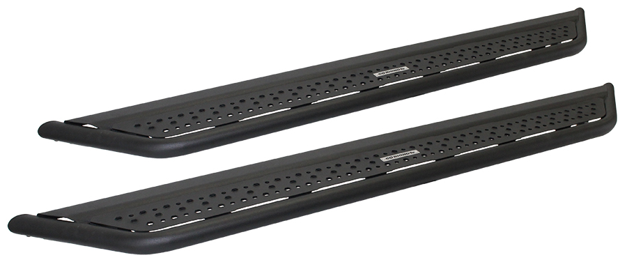 Your Dominator D6 Running Boards are customized to fit perfectly with the exterior of your exact make and model truck. Fabricated from tough, long-lasting, 16-gauge steel, your Go Rhino boards are finished with a textured black powder coat that is corrosion, impact and abrasion-resistant. Each of the two steps can hold up to 300 pounds. And, the anti-slip, raised hex pattern is a lifesaver, edged by a wraparound stabilizing steel tube.
