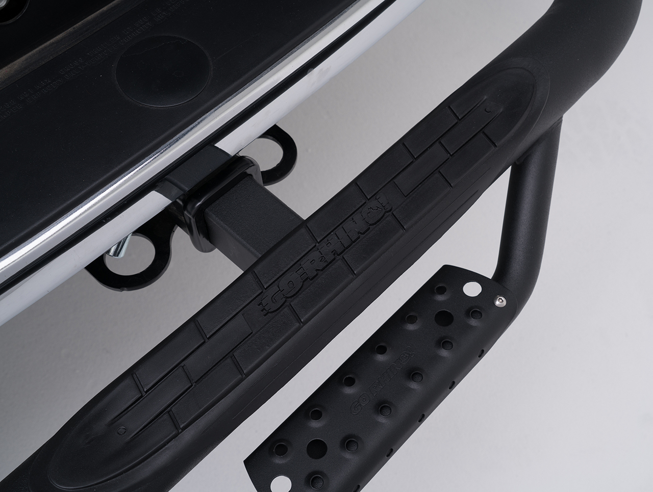 Your new Go Rhino accessory generates an additional barrier from rear-end collisions. And, the giant tube step incorporates a textured footpad to give you a safe boost when reaching into your cargo area or loading up your roof rack. Best of all, customize your latest addition by picking either the Polished Stainless Steel or Black Powder Coat.