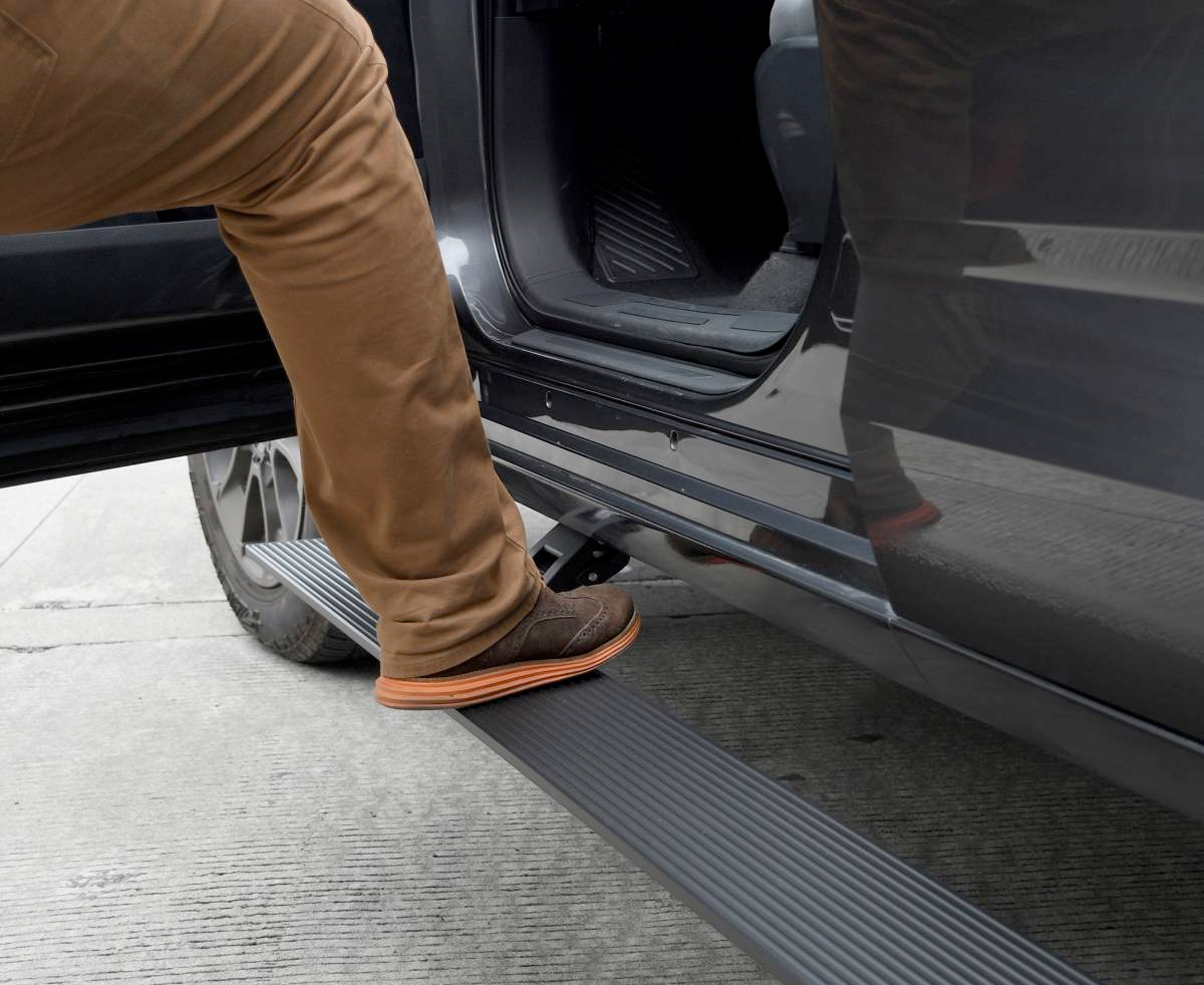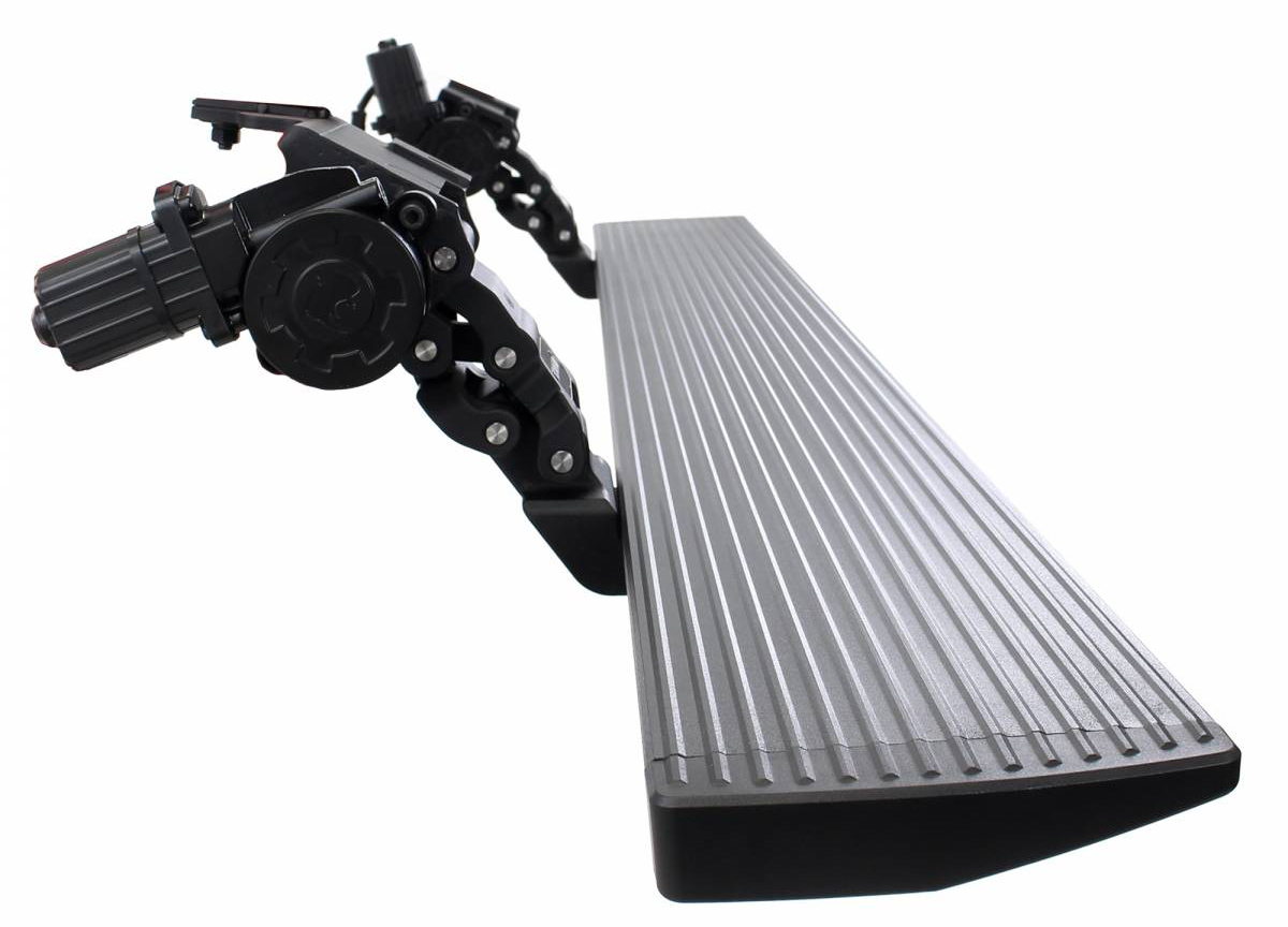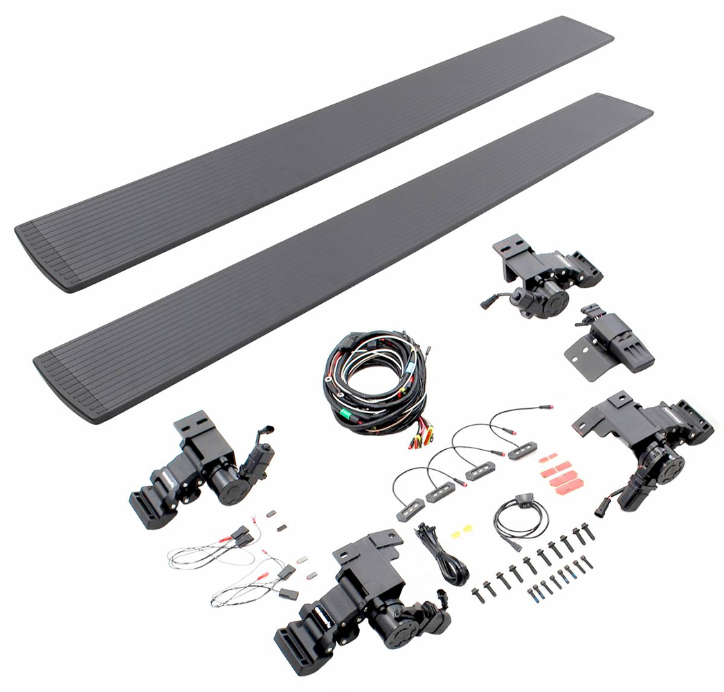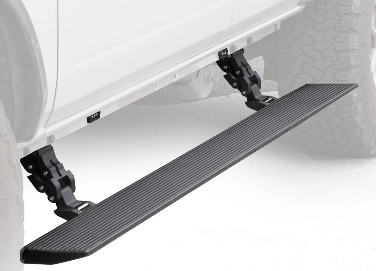 Each board sports a 6-inch-wide stepping surface with accented LED lights for safety and comes manufactured using lightweight Aluminum with an anti-slip surface. The textured Black Powder Coating and Nylon end caps add another level of grip-ability and keep you safe during inclement weather conditions like rain, icy sleet or snow. A dual motor system allows you to reliably use the step no matter what crazy weather hits and also works to shield your rocker panels from damaging forces.