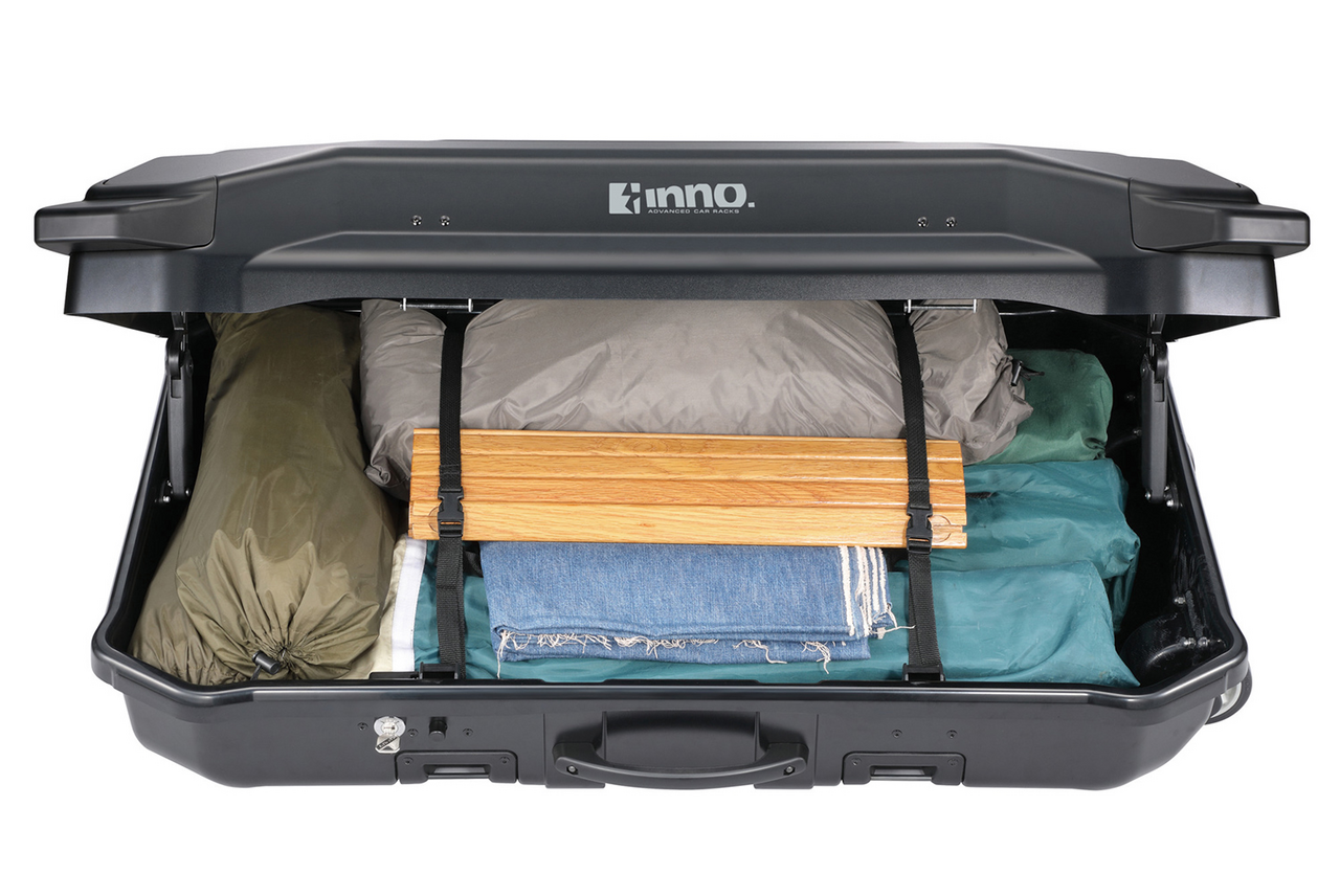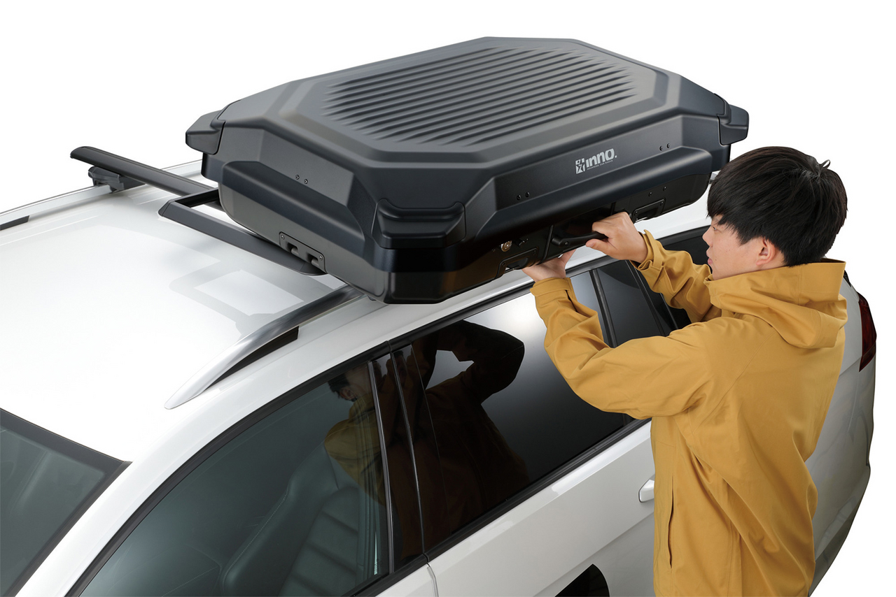 - The Inno Gear Carry Roof Top Cargo Box integrates a cargo carrier and rolling baggage into one convenient package