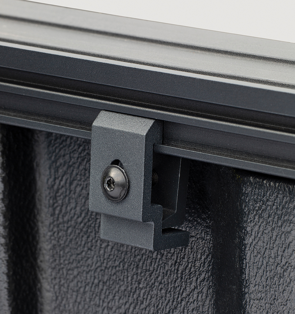 - Low-profile, eye-catching black panels are made from durable materials