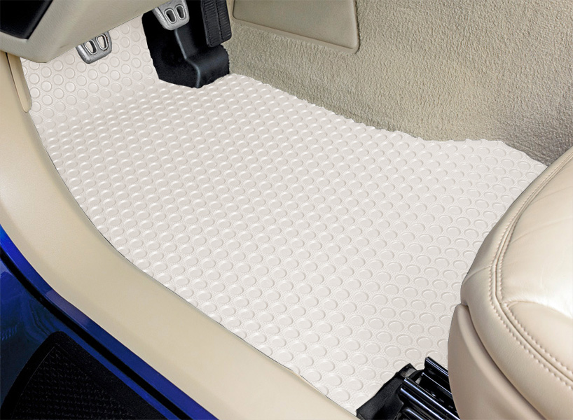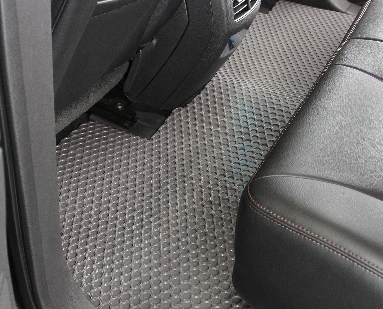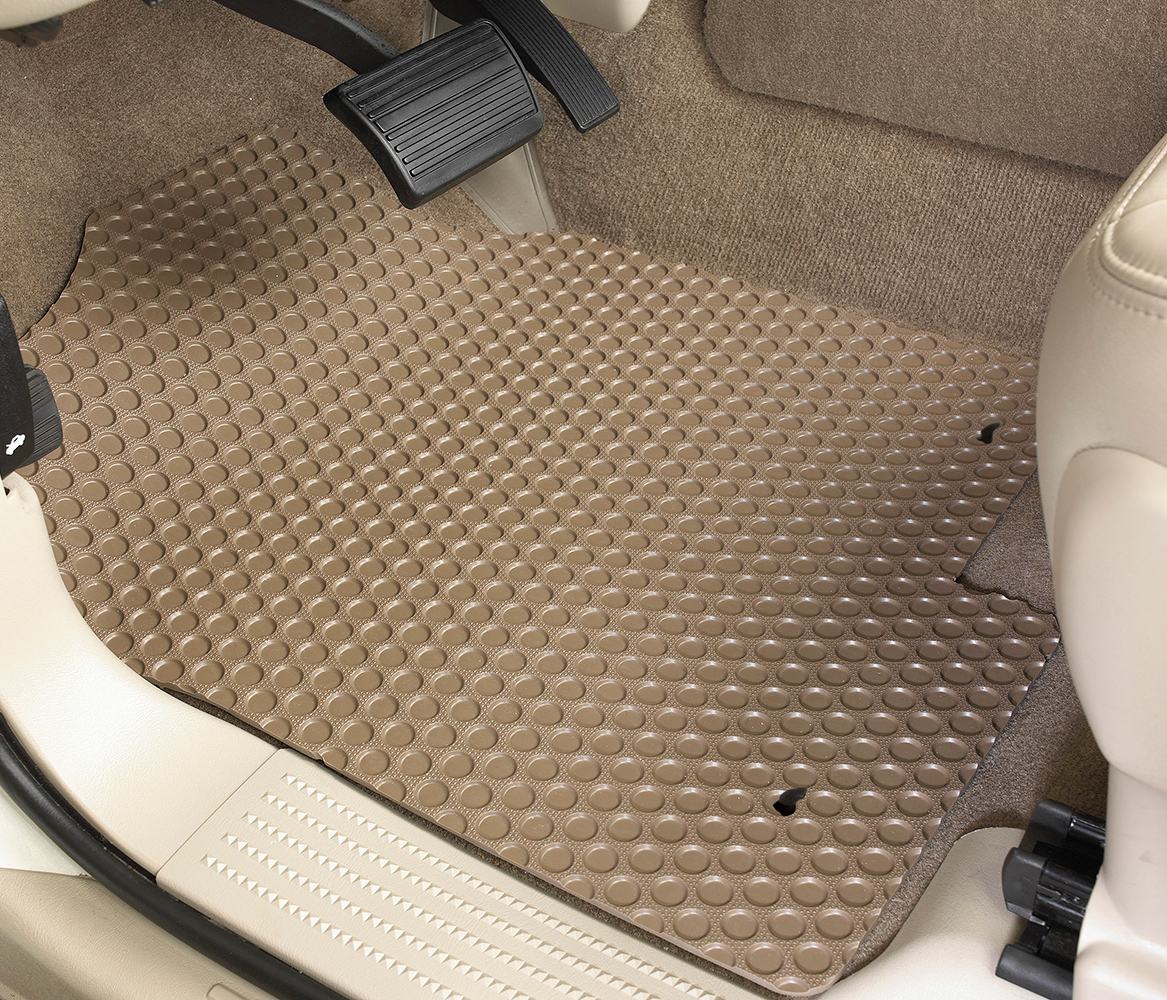 In order to capture large amounts of mud, fluids, and debris, RubberTite design employs a system of tiny cups instead of high, cumbersome edges or deep channels. Each RubberTite Floor Mat is individually made to fit your specific vehicle. This ensures a low-profile design with optimal coverage for your specific ride. The tiny spikes on the underside grip into your factory carpet so your floor mats don't slide around once installed. When the inevitable spills finally do happen, simply remove them and hose them off.