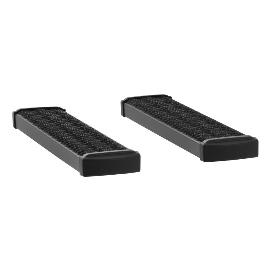 The matching plastic end-caps finish the entire aesthetic, which is coated in a corrosion-resistant texturized black powder coat. The required, custom-designed, vehicle-specific black powder-coated steel mounting brackets are supplied. Your slick new running boards are made right here in the United States and come with a one-year warranty.