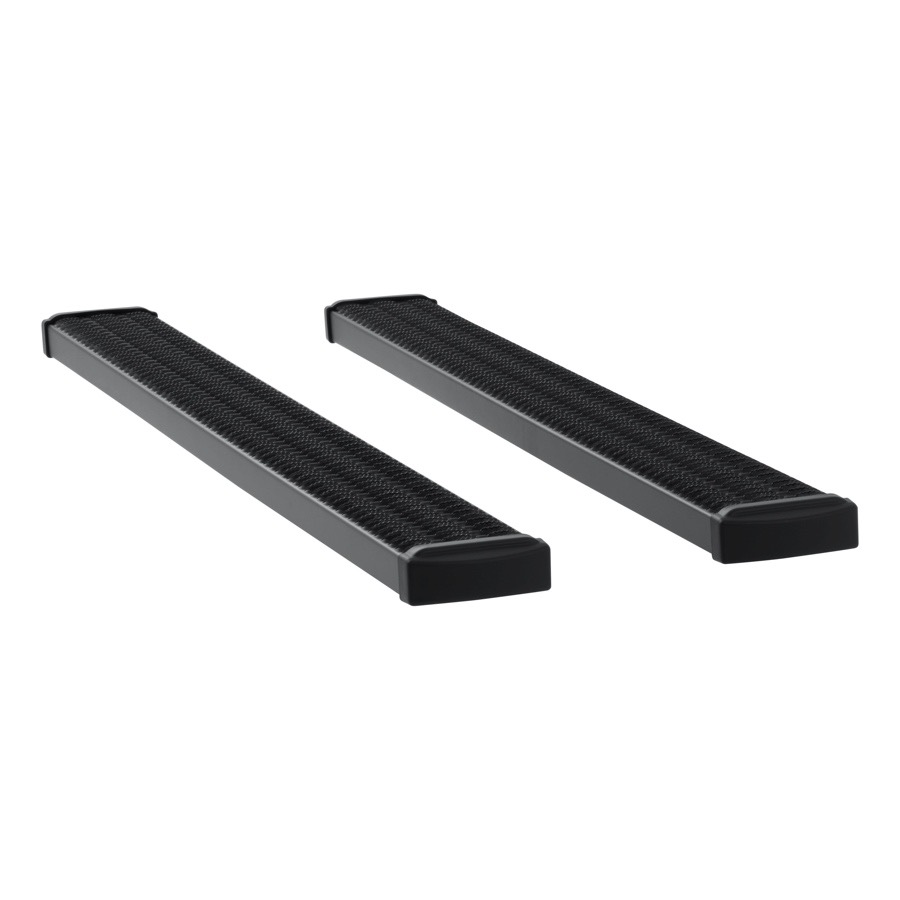 The matching plastic end-caps finish the entire aesthetic, which is coated in a corrosion-resistant texturized black powder coat. The required, custom-designed, vehicle-specific black powder-coated steel mounting brackets are supplied. Your slick new running boards are made right here in the United States and come with a one-year warranty.