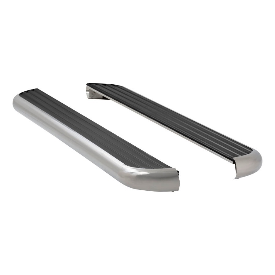 Your hard-working ride won’t be weighed down by the stainless-steel construction of these 6.5-inch-wide boards, thanks to the lightweight extruded-aluminum core. Superior to itsy bitsy plastic step pads, the rubber surfaces will grip your soles, and the integrated channels will drain away water and mud. These running boards are offered in wheel-to-wheel and cab-only lengths.