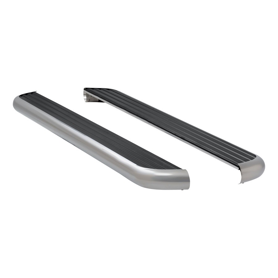 Your hard-working ride won’t be weighed down by the stainless-steel construction of these 6.5-inch-wide boards, thanks to the lightweight extruded-aluminum core. Superior to itsy bitsy plastic step pads, the rubber surfaces will grip your soles, and the integrated channels will drain away water and mud. These running boards are offered in wheel-to-wheel and cab-only lengths.