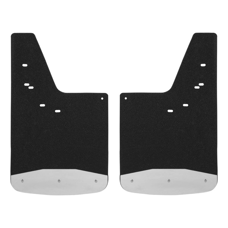 Your Luverne Mud Guards are entirely rip and tear-proof thanks to the heavy-duty .375-inch textured rubber material. Formulated to resist UV damage, these mud flaps won't fade, crack or distort in any climate, no matter how harsh the sun exposure. The bottom of each splash guard boasts an 18-gauge Stainless Steel plate, which stabilizes the flap and serves as a sturdy barrier between your truck's finish and any splatters.