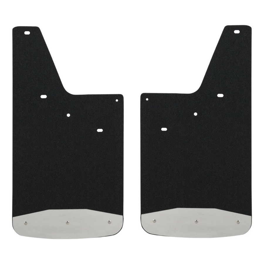 Your Luverne Mud Guards are entirely rip and tear-proof thanks to the heavy-duty .375-inch textured rubber material. Formulated to resist UV damage, these mud flaps won't fade, crack or distort in any climate, no matter how harsh the sun exposure. The bottom of each splash guard boasts an 18-gauge Stainless Steel plate, which stabilizes the flap and serves as a sturdy barrier between your truck's finish and any splatters.