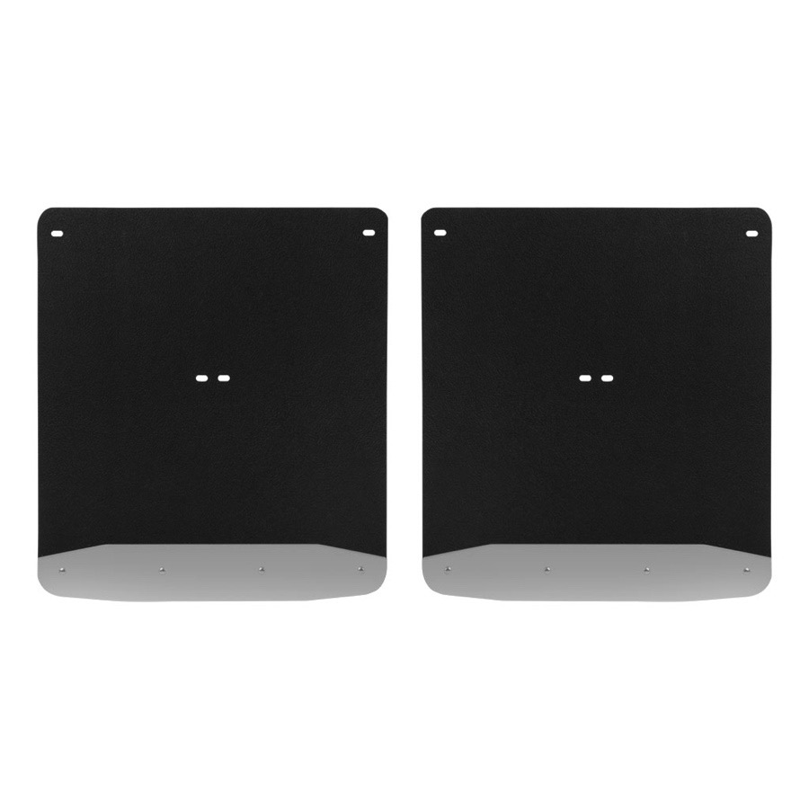 Your Luverne Mud Guards are entirely rip and tear-proof thanks to the heavy-duty .375-inch textured rubber material. Formulated to resist UV damage, these mud flaps won't fade, crack or distort in any climate, no matter how harsh the sun exposure. The bottom of each splash guard boasts an 18-gauge Stainless Steel plate, which stabilizes the flap and serves as a sturdy barrier between your truck's finish and any splatters.