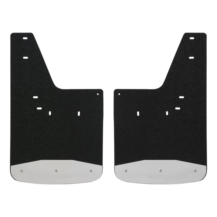 Your Luverne Mud Guards are entirely rip and tear-proof thanks to the heavy-duty .375-inch textured rubber material. Formulated to resist UV damage, these mud flaps won't fade, crack or distort in any climate, no matter how harsh the sun exposure. The bottom of each splash guard boasts an 18-gauge Stainless Steel plate, which stabilizes the flap and serves as a sturdy barrier between your truck's finish and any splatters.