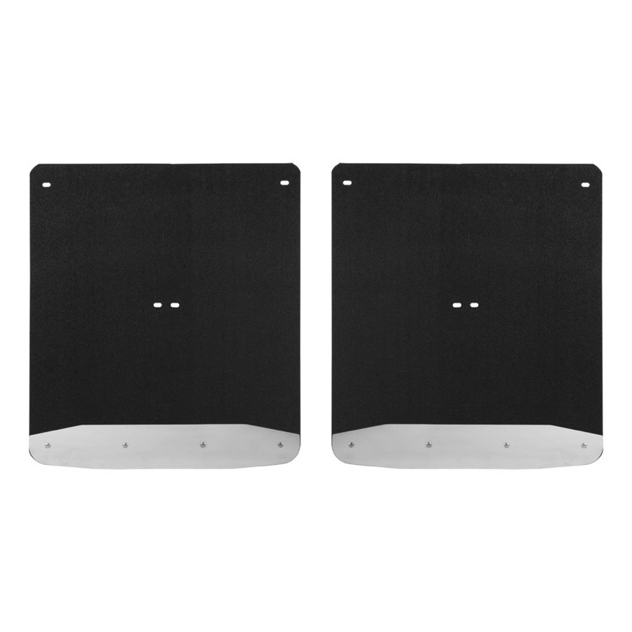 Your Luverne Mud Guards are entirely rip and tear-proof thanks to the heavy-duty .375-inch textured rubber material. Formulated to resist UV damage, these mud flaps won't fade, crack or distort in any climate, no matter how harsh the sun exposure. The bottom of each splash guard boasts an 18-gauge Stainless Steel plate, which stabilizes the flap and serves as a sturdy barrier between your truck's finish and any splatters.
