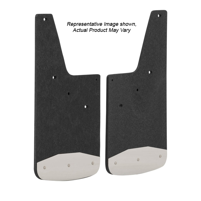Your Luverne Mud Guards are entirely rip and tear-proof thanks to the heavy-duty .375-inch textured rubber material. Formulated to resist UV damage, these mud flaps won't fade, crack or distort in any climate, no matter how harsh the sun exposure. The bottom of each splash guard boasts an 18-gauge Stainless Steel plate, which stabilizes the flap and serves as a sturdy barrier between your truck's finish and any splatters.
