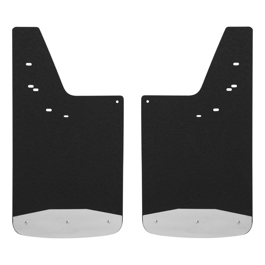 Your Luverne Mud Guards are entirely rip and tear-proof thanks to the heavy-duty .375-inch textured rubber material. Formulated to resist UV damage, these mud flaps won't fade, crack or distort in any climate, no matter how harsh the sun exposure. The bottom of each splash guard boasts an 18-gauge Stainless Steel plate, which stabilizes the flap and serves as a sturdy barrier between your truck's finish and any splatters.