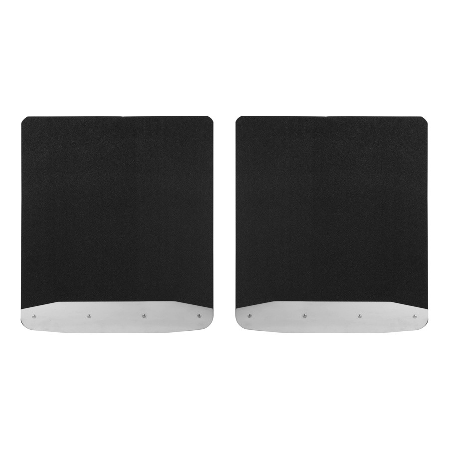 Your Luverne Mud Guards are entirely rip and tear-proof thanks to the heavy-duty .375-inch textured rubber material. Formulated to resist UV damage, these mud flaps won't fade, crack or distort in any climate, no matter how harsh the sun exposure. The bottom of each splash guard boasts an 18-gauge Stainless Steel plate, which stabilizes the flap and serves as a sturdy barrier between your truck's finish and any splatters.