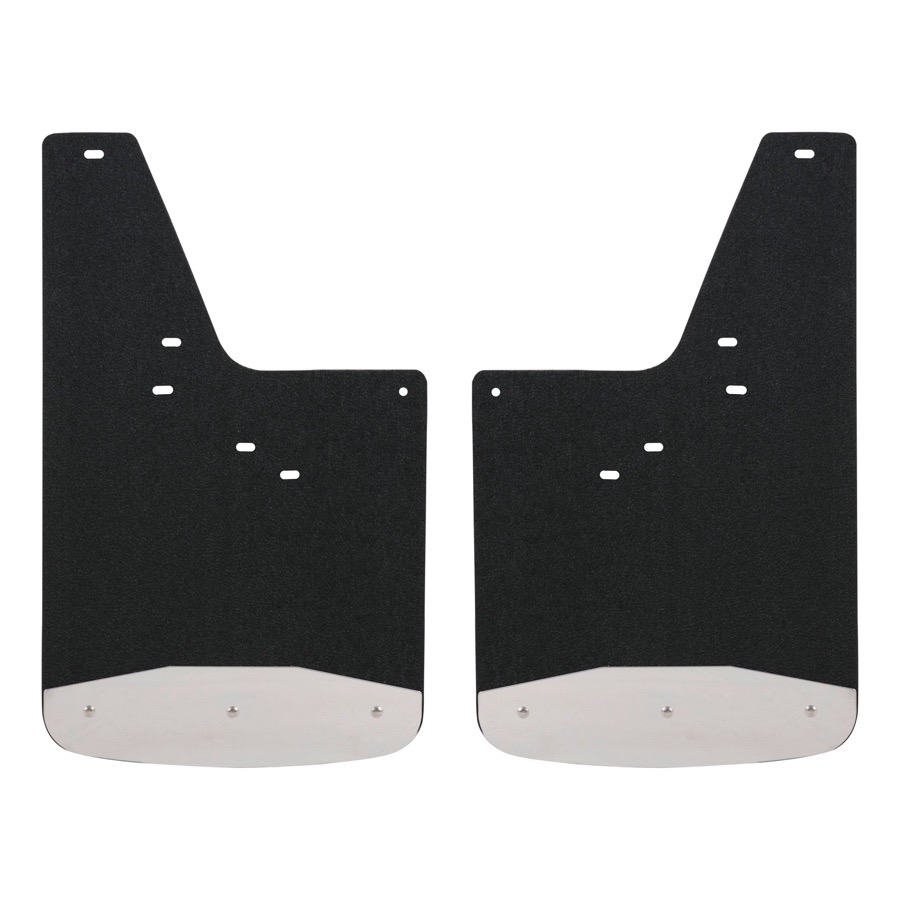 Your Luverne Mud Guards are entirely rip and tear-proof thanks to the heavy-duty .375-inch textured rubber material. Formulated to resist UV damage, these mud flaps won't fade, crack or distort in any climate, no matter how harsh the sun exposure. The bottom of each splash guard boasts an 18-gauge Stainless Steel plate, which stabilizes the flap and serves as a sturdy barrier between your truck's finish and any splatters.