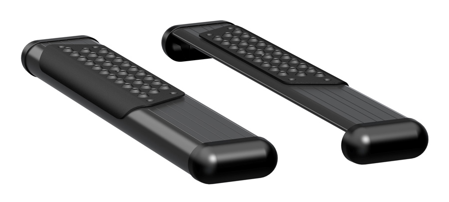 Your Luverne O-Mega II Nerf Bars' 6-inch wide T6 Aluminum construction is exceptionally sturdy without weighing you down. Paintable TPO end caps allow you to further personalize these oval steps to complement the stylish look of your truck or SUV. Each bar is powder-coated in your choice of Silver or Black to prevent rust and then topped with a non-skid Aluminum step pad.