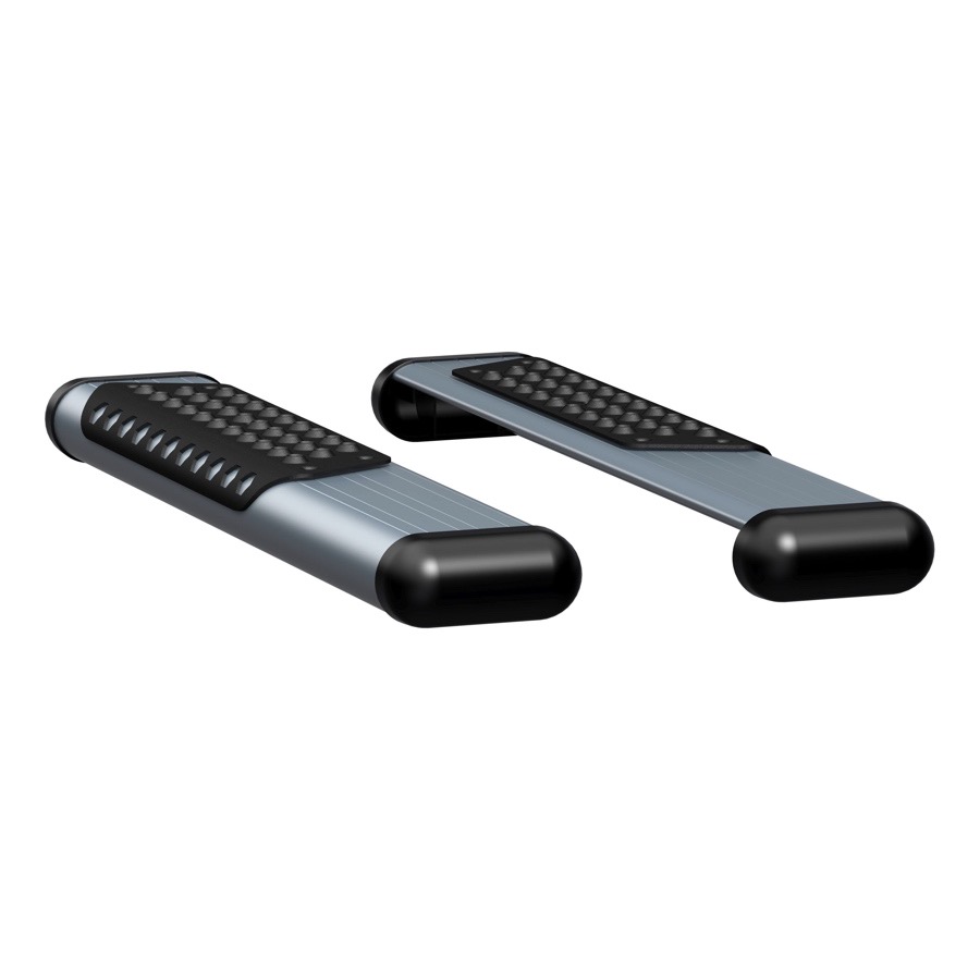 Your Luverne O-Mega II Nerf Bars' 6-inch wide T6 Aluminum construction is exceptionally sturdy without weighing you down. Paintable TPO end caps allow you to further personalize these oval steps to complement the stylish look of your truck or SUV. Each bar is powder-coated in your choice of Silver or Black to prevent rust and then topped with a non-skid Aluminum step pad.