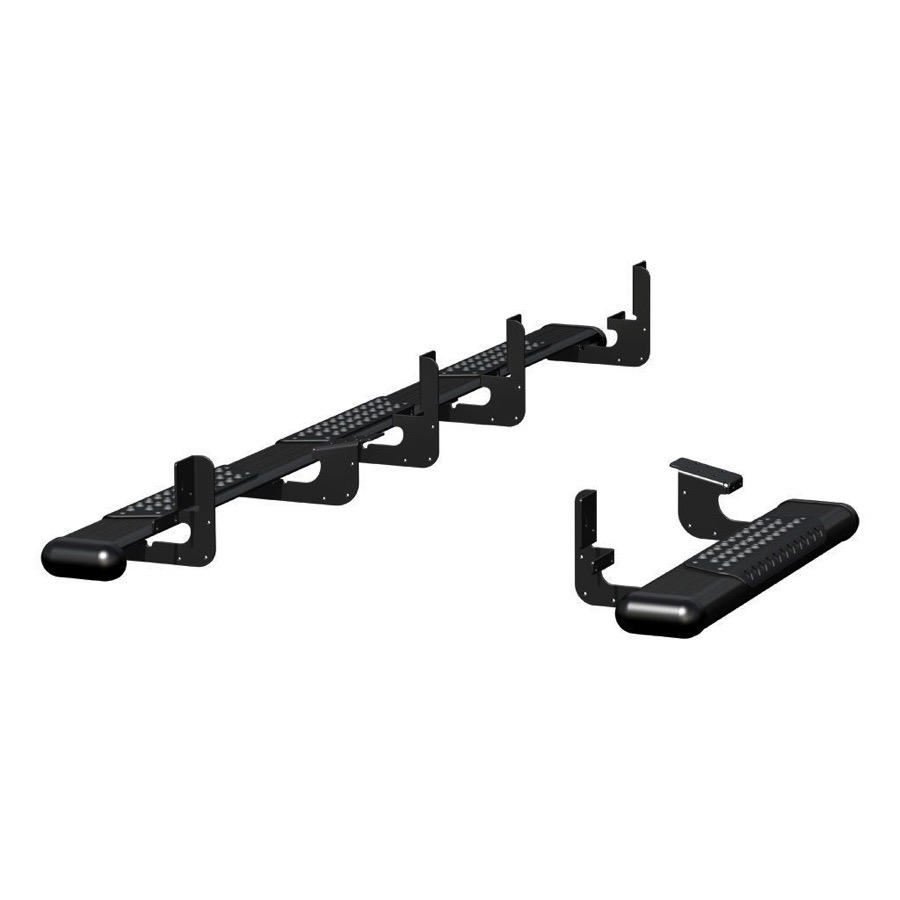 The bars arrive without the powder-coated step pads mounted, so you can easily install each pad to factory specs or to a more customized position using simple self-tapping screws. You can also add a splash of color by painting each step before installing, or remove and paint later. Each set is tailored for your specific vehicle and is available in cab-length or wheel-to-wheel configurations. Made in the United States of America and backed by a 5-Year Warranty.