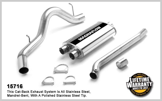 Installation typically takes less than two hours with no drilling, cutting, or welding required. The quality of a Magnaflow Performance Exhaust System is designed to impress and comes with a Lifetime Warranty.