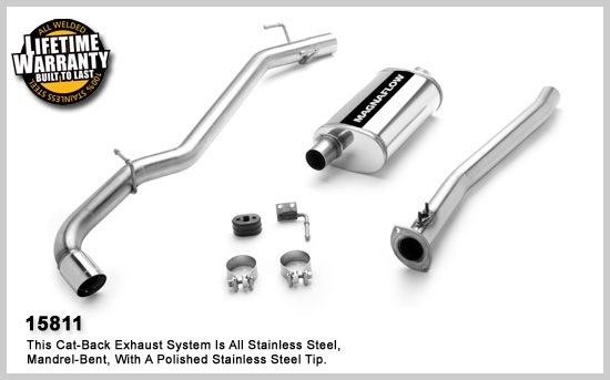 From burning rubber on the racetrack to cruising with your date at the rally downtown, a Magnaflow Performance Exhaust System will give you the power, performance, and personality to make any car enthusiast jealous. Comprised of high-flow stainless steel tubing, each performance system set-up is smog and street legal in all 50 states. Upgrade to the premium Magnaflow Series for double-wall welded tips and a polished muffler.