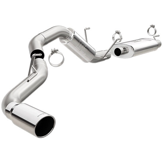 The Magnaflow Performance Exhaust System maximizes scavenging and minimizes backpressure. The perfect flow-rate efficiency is crafted with20% less bends than a stock exhaust, and a steel-mesh core in the muffler to establish optimal temperature for expelling exhaust gases. Choose between single and dual kits for both gas and diesel vehicles.