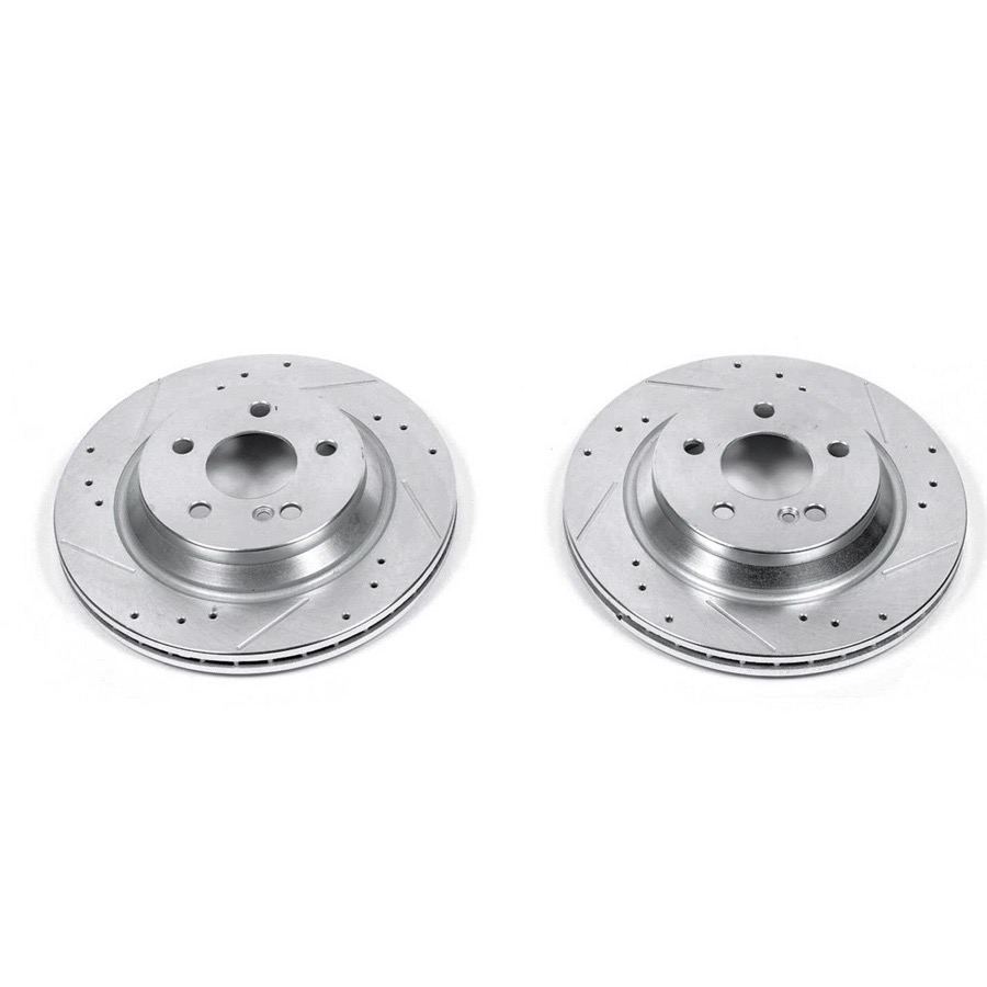 Cross-Drilled and Slotted Brake Rotors from Power Stop are made to fit your vehicle perfectly as an OEM replacement. They can be put on right where your stock rotors are, without any changes. They are covered with a silver or gold zinc dichromate that stops rust and oxidation so they look good and work well for a long time. Your Power Stop cross-drilled and slotted brake rotors are covered by a Warranty that lasts for 3 Years or 36,000 Miles.