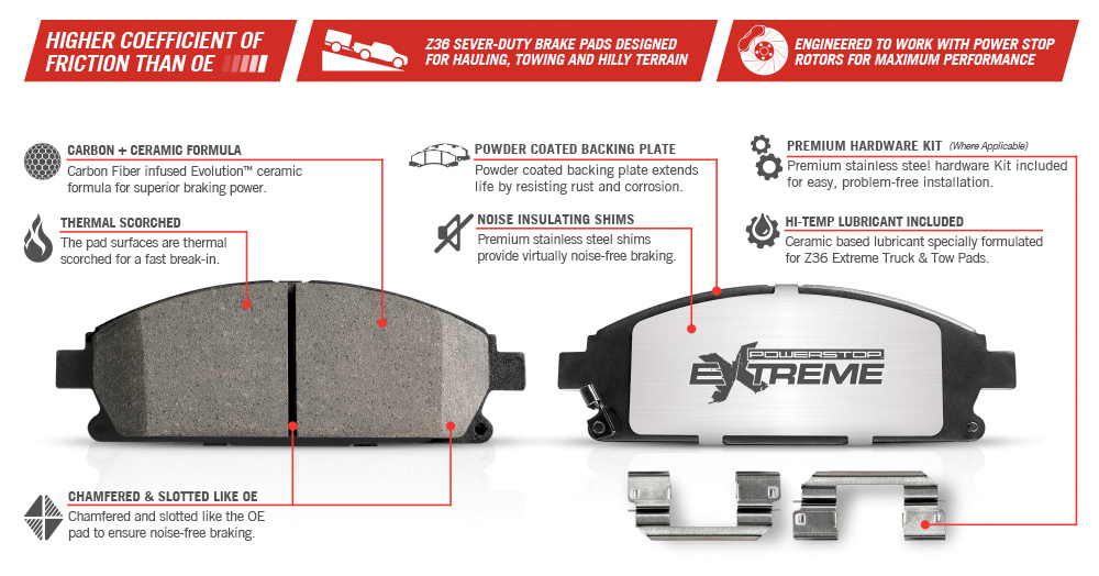 - Power Stop Z36 Extreme Truck & Tow Brake Pads are built for serious stopping power