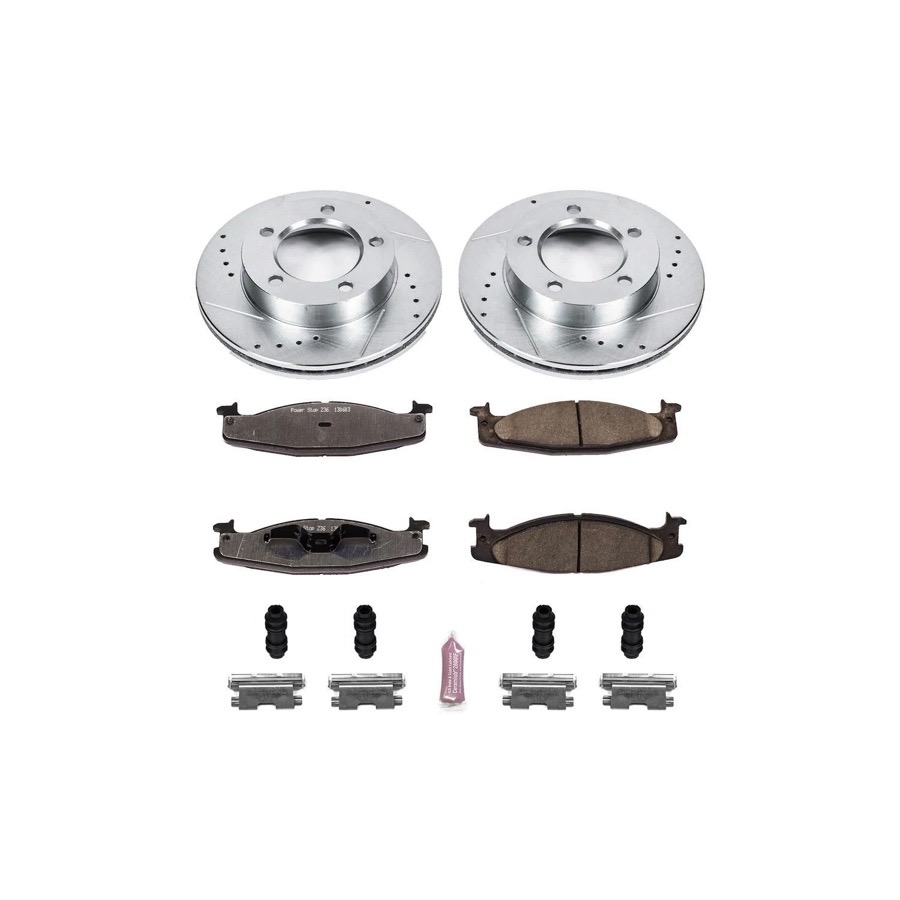 Your Power Stop Truck & Tow Brake Kit includes Z36 metallic brake pads and Power Stop cross-drilled and slotted rotors. This performance brake package was specially created to improve the performance of your large vehicle, and it can enhance stopping power by as much as 17%. The included rotors have been drilled and slotted to dissipate heat and lessen brake fade. These advanced rotors also sweep clear brake dust for a better initial bite between the surface of the rotor and your heavy-duty carbon ceramic brake pads. Each kit installs easily and provides your truck or SUV with a straight OEM-style fit with optimum function.